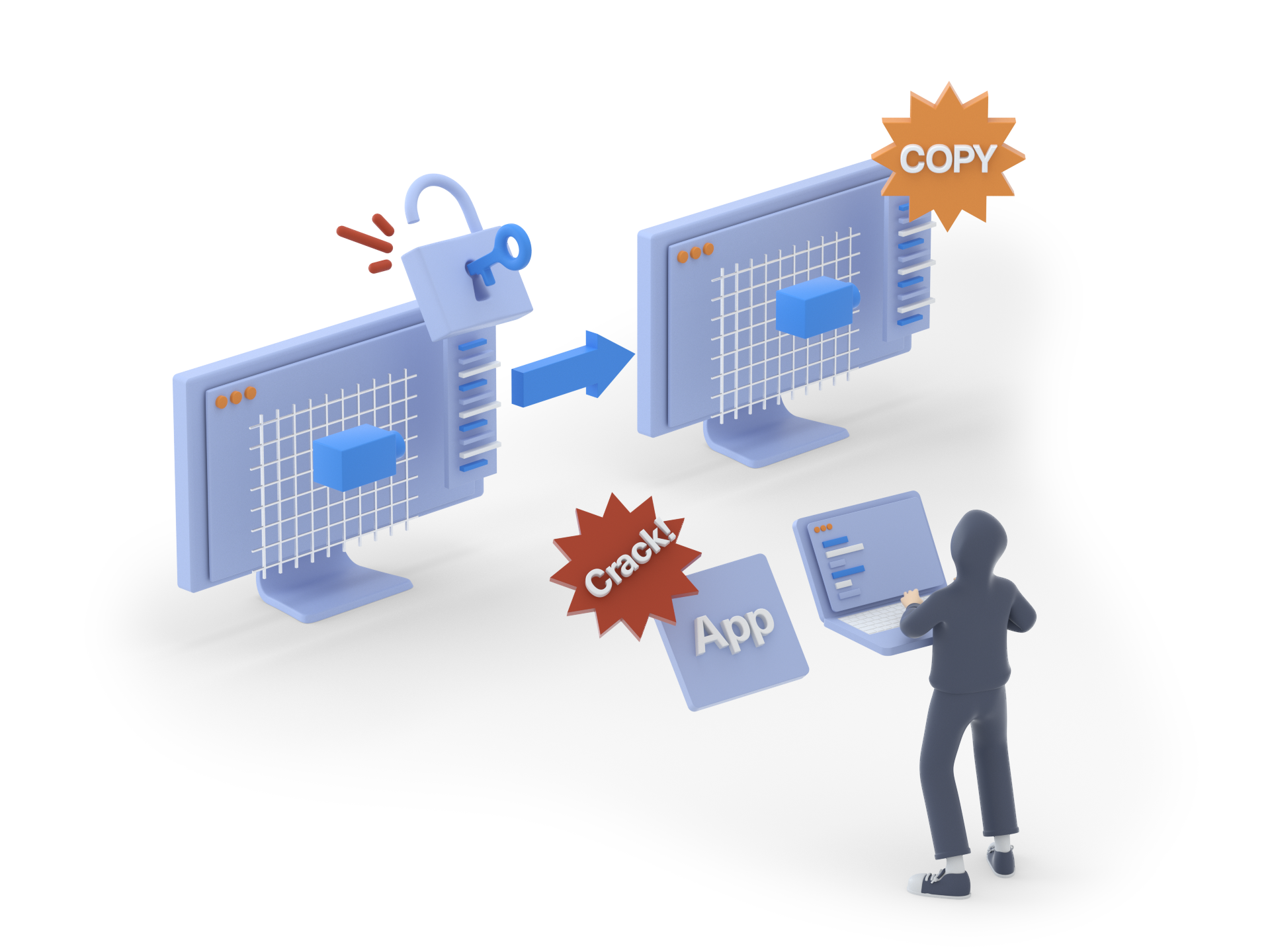 CrackProofは、様々なクラッキング(不正な解析・改ざん行為)から