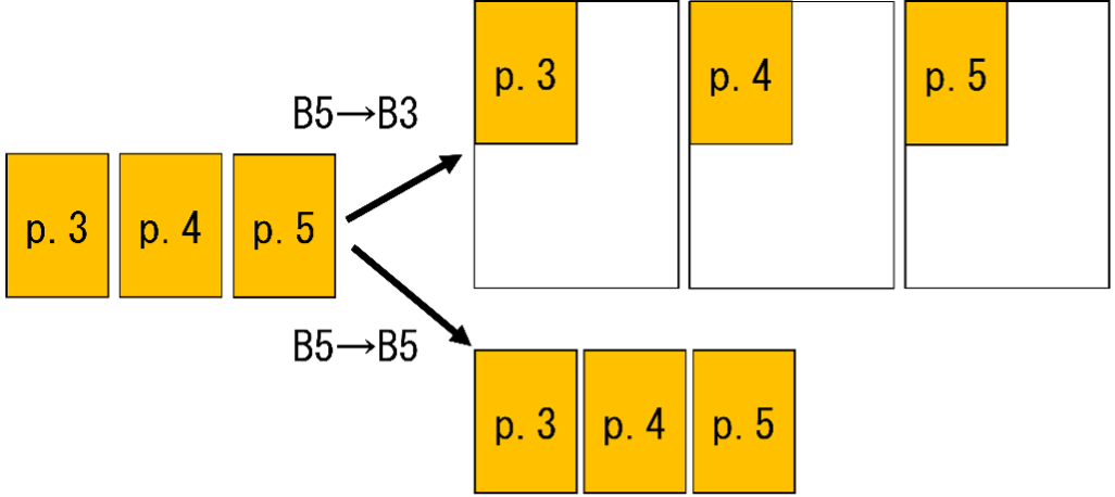 B5→B3のコピーでは、B3への1枚単位でのコピー制限により余白ができます。