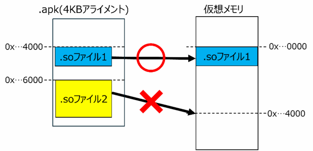 これらはアプリが想定するページサイズと実際のページサイズのずれにより、共有ライブラリ(以下.soファイル)やアプリのメモリマッピングに問題が生じることで起きます。